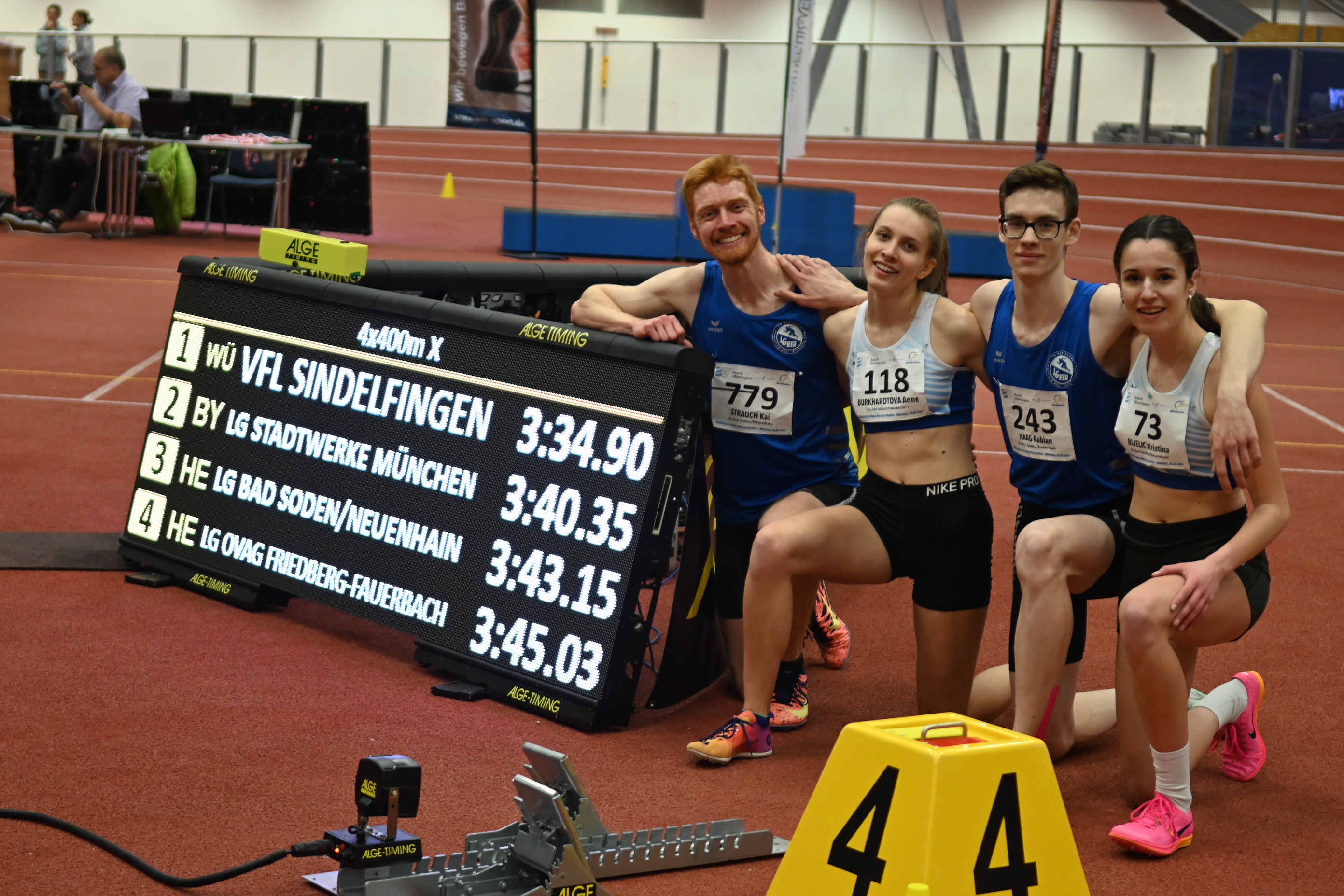 Kai und Anne mussten dann etwas später noch bei der Mixed-Staffel ran. Kai lief ein souveränes Rennen von der Spitze weg und übergab das Staffelholz an Anne in Führung liegend. Anne wurde trotz guten Rennens von den Staffelläuferinnen aus Sindelfingen und München überholt. Fabian Haag konnte als dritter Läufer mit einem beherzten Rennen kurz vor der Übergabe noch eine Position gut machen um dann an unsere Schlussläuferin Kristina Bijelic das Staffelholz zu übergeben. Kristina konnte den Angriff des Läufers von München zwar nicht abwehren, brachte das Staffelholz aber als Drittplatzierte mit einem sehr guten Rennen und einer Zeit von 3:43,15 ins Ziel.