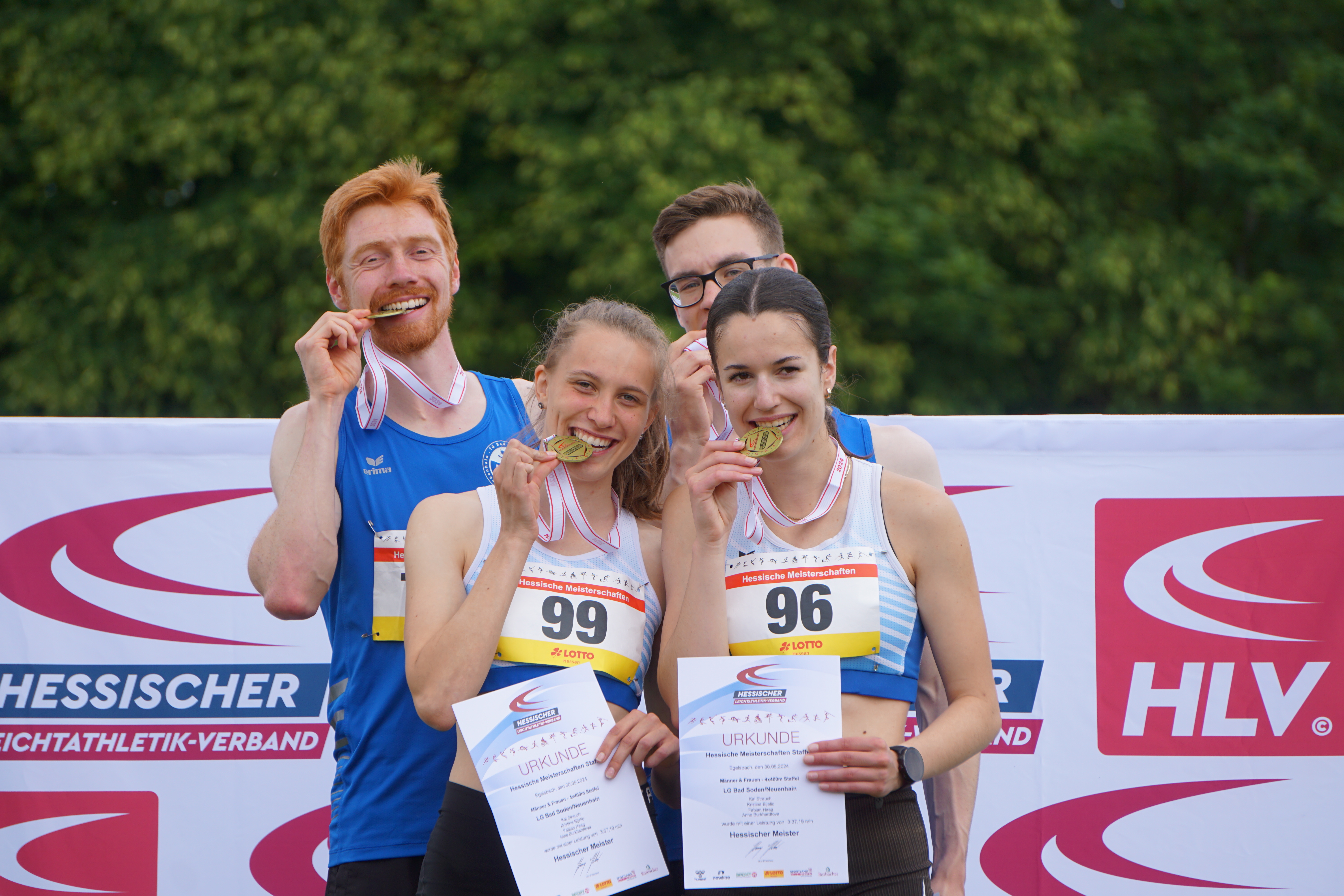 Die Mixed-Staffel Männer/Frauen in der Besetzung: Kai Strauch, Kristina Bijelic, Fabian Haag und Anne Burkhardtova lieferten sich über die 4 x 400 m ein packendes Rennen mit der LG OVAG Friedberg-Fauerbach und konnten letztendlich einen souveränen Sieg einfahren. Die Zeit von 3:37,19 min bedeuteten nicht nur Platz 1 sondern auch die Qualifikationsnorm für die Deutschen Meisterschaften.