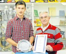 Leichtathlet des Jahres: Steffen Trenk (links) wurde von Hans Theinl ausgezeichnet. Foto: Nietner