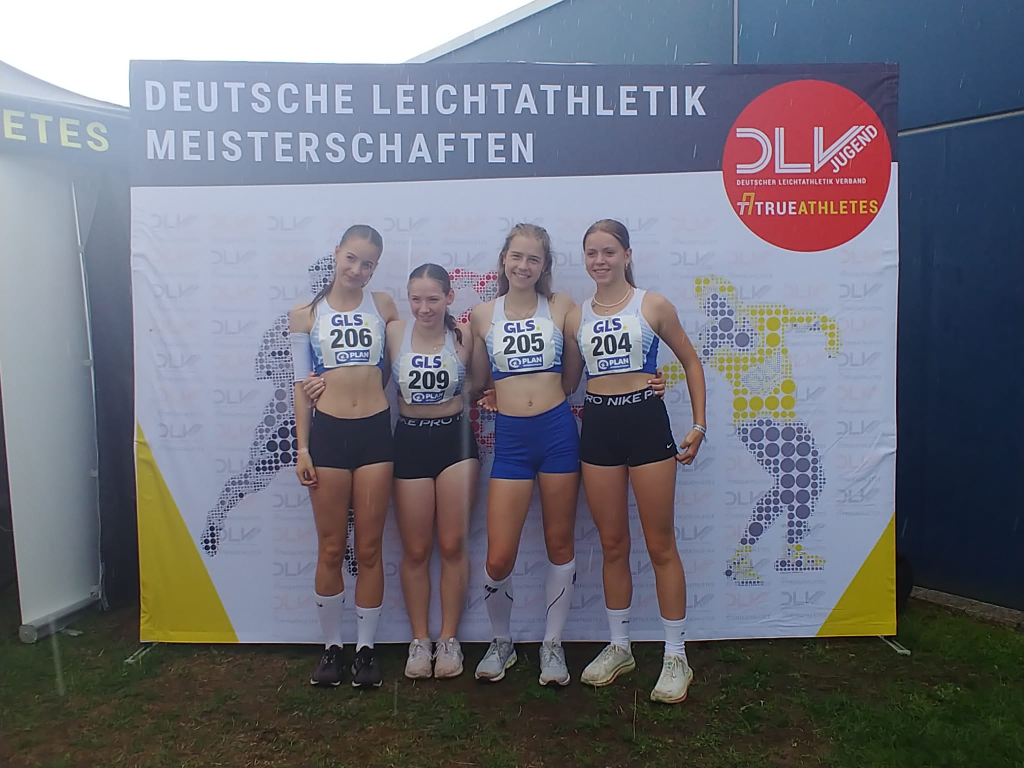 Die 4 x 100 m Staffel der LGBSN in der Besetzung Ella Jung, Rebecca Wollenweber, Neela Szangolies und Emma Höhn belegte in 51,18 Sekunden Platz 30 von 41 Staffeln. Damit schied das Quartett im Vorlauf aus. Auch die Quali-Zeit von 50,64 Sekunden hätte das Überstehen des Vorlaufes nicht gesichert. " Bei besseren Wechseln wäre eine bessere Zeit drin gewesen. Bei einer "Deutschen" zu starten, ist schon etwas anderes", meinte LG-Trainer Christian Müller.